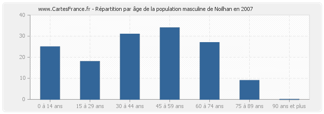 Répartition de la population masculine de Noilhan par âge en 2007 :