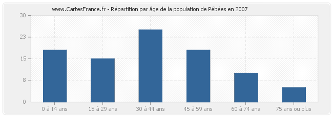Répartition de la population de Pébées par âge en 2007 :
