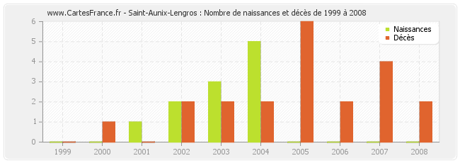 - Saint-Aunix-Lengros en 2005 : 0 naissances et 6 décès