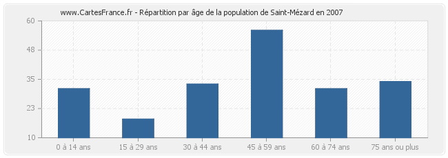 - Population de Saint-Mézard de 45 à 59 ans : 56 habitants