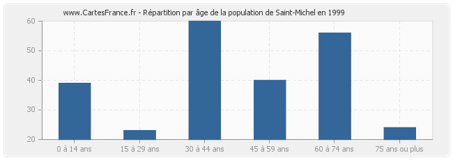 - Population de Saint-Michel de 60 à 74 ans : 56 habitants