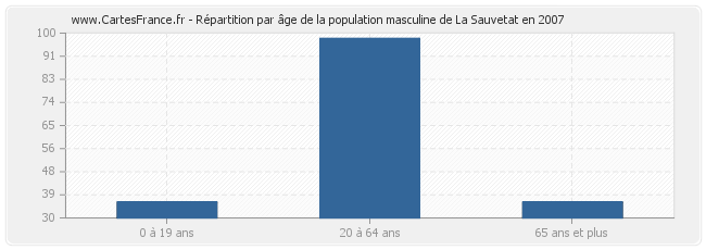 Répartition de la population masculine de La Sauvetat par âge en 2007 :