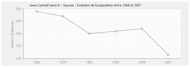 La population de Sauviac était de 113 habitants en 2007, 134 habitants en 1999, 132 habitants en 1990, 130 habitants en 1982, 144 habitants en 1975 et 148 habitants en 1968.