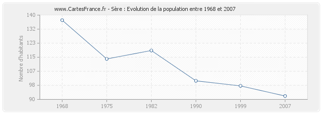 - Population de Sère en 2007 : 92 habitants
