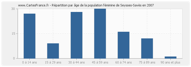- Femmes de 45 à 59 ans habitant Seysses-Savès : 30