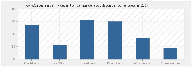 - Population de Tourrenquets de 30 à 44 ans : 29 habitants