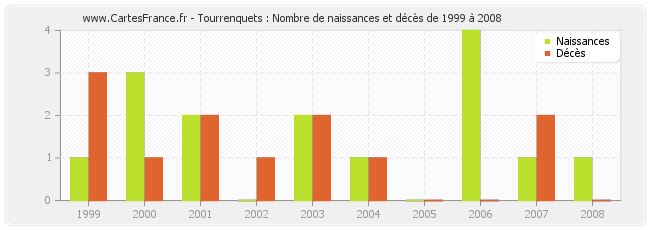 - Tourrenquets en 1999 : 1 naissances et 3 décès