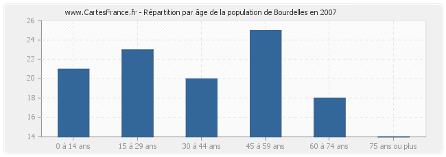 - Population de Bourdelles de 75 ans ou plus : 14 habitants
