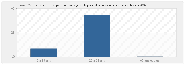 Répartition de la population masculine de Bourdelles par âge en 2007 :