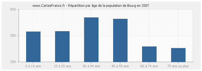 - Population de Bourg de 45 à 59 ans : 374 habitants