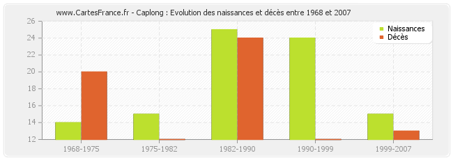 Caplong : évolution des naissances et décès de 1968 à 2007