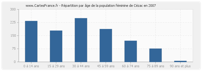 Répartition de la population féminine de Cézac par âge en 2007 :