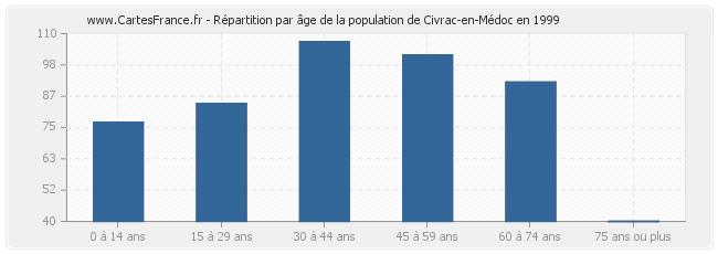 Répartition de la population de Civrac-en-Médoc par âge en 1999 :