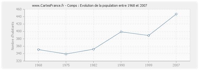 La population de Comps était de 447 habitants en 2007, 389 habitants en 1999, 399 habitants en 1990, 352 habitants en 1982, 339 habitants en 1975 et 351 habitants en 1968.