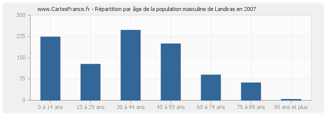 Répartition de la population masculine de Landiras par âge en 2007 :