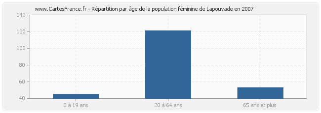 Répartition de la population féminine de Lapouyade par âge en 2007 :