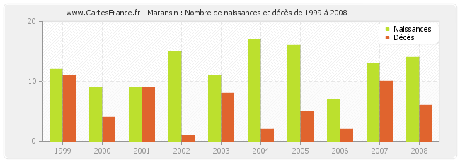 - Maransin en 2008 : 14 naissances et 6 décès