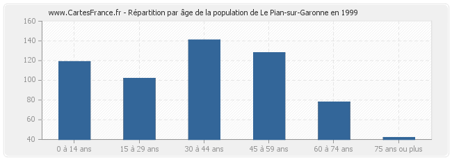 Répartition de la population de Le Pian-sur-Garonne par âge en 1999 :