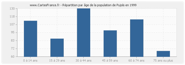 - Population de Pujols de 60 à 74 ans : 114 habitants