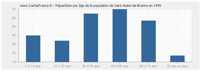 - Population de Saint-Aubin-de-Branne de 45 à 59 ans : 70 habitants