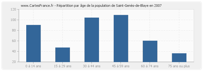 - Population de Saint-Genès-de-Blaye de 45 à 59 ans : 109 habitants