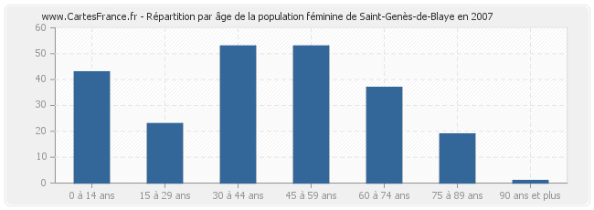 - Femmes de 45 à 59 ans habitant Saint-Genès-de-Blaye : 53