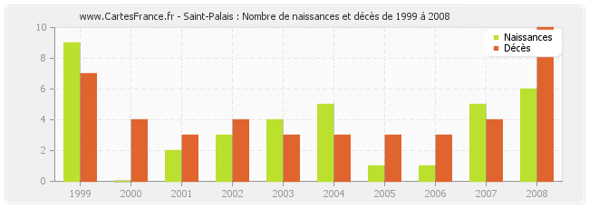 - Saint-Palais en 2008 : 6 naissances et 10 décès