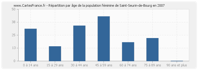 Répartition de la population féminine de Saint-Seurin-de-Bourg par âge en 2007 :