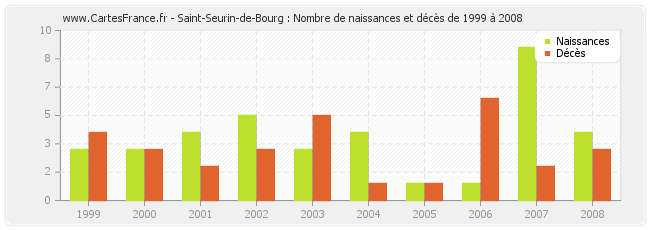 - Saint-Seurin-de-Bourg en 2008 : 4 naissances et 3 décès