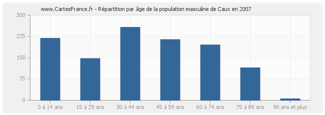 - Hommes de 30 à 44 ans habitant Caux : 257
