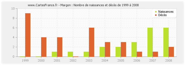 - De 1999 à 2007 : 10 naissances et 30 décès