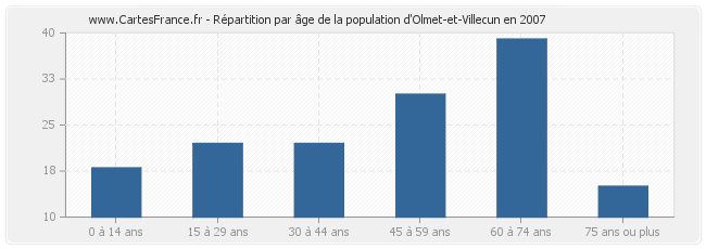 - Population d'Olmet-et-Villecun de 60 à 74 ans : 39 habitants