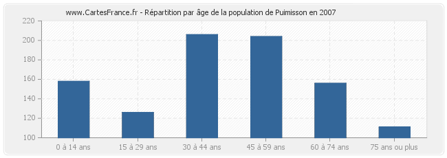 - Population de Puimisson de 30 à 44 ans : 162 habitants