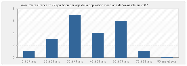 Répartition de la population masculine de Valmascle par âge en 2007 :
