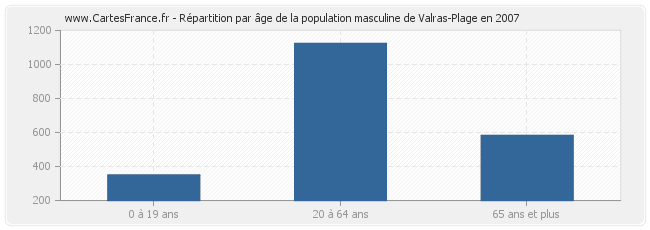 Répartition de la population masculine de Valras-Plage par âge en 2007 :