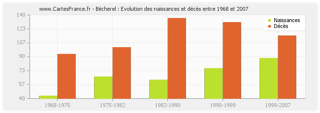 Bécherel : évolution des naissances et décès de 1968 à 2007