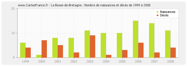 - La Bosse-de-Bretagne en 2008 : 11 naissances et 4 décès