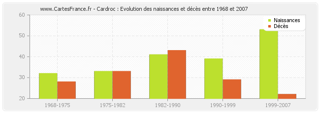 Cardroc : évolution des naissances et décès de 1968 à 2007