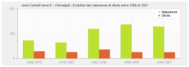 Chevaigné : évolution des naissances et décès de 1968 à 2007