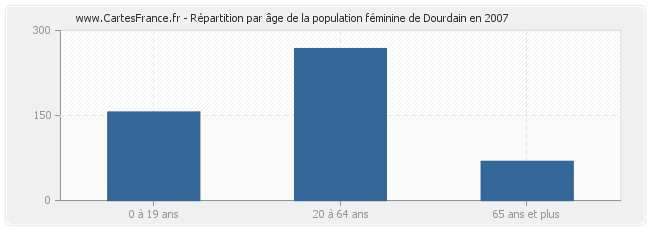 Répartition de la population féminine de Dourdain par âge en 2007 :
