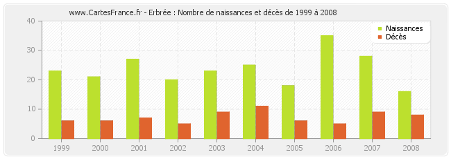 - Erbrée en 2008 : 16 naissances et 8 décès
