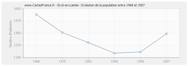 - Population d'Ercé-en-Lamée en 1968 : 1 542 habitants