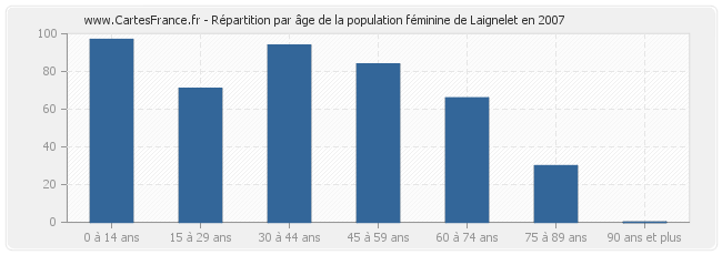 Répartition de la population féminine de Laignelet par âge en 2007 :