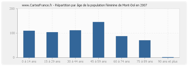 - Femmes de 45 à 59 ans habitant Mont-Dol : 145