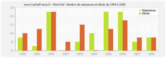- Mont-Dol en 2008 : 9 naissances et 9 décès