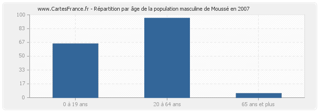 - Hommes de 0 à 19 ans habitant Moussé : 65