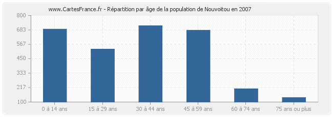 Répartition de la population de Nouvoitou par âge en 2007 :
