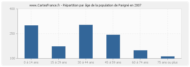 - Population de Parigné de 30 à 44 ans : 302 habitants