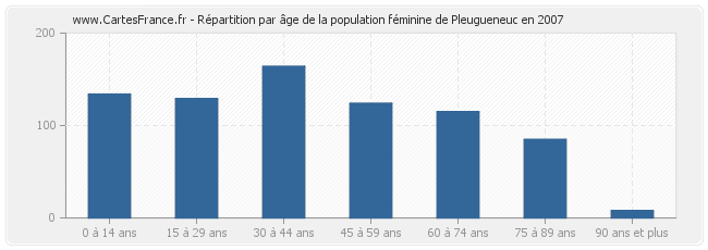 Répartition de la population féminine de Pleugueneuc par âge en 2007 :
