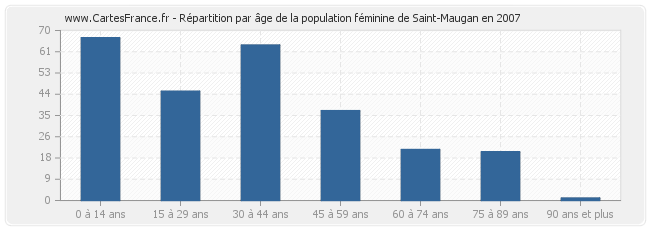 Répartition de la population féminine de Saint-Maugan par âge en 2007 :